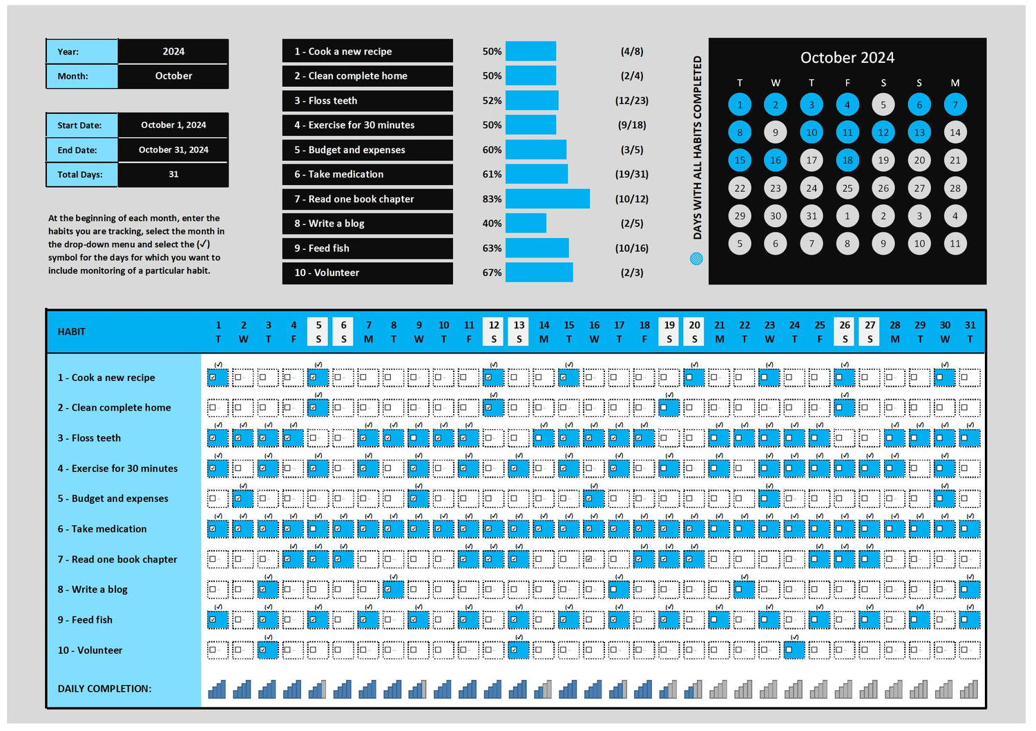 Extrike Ultimate Habit Tracker Bundle | Daily, Weekly & Monthly Excel Spreadsheet